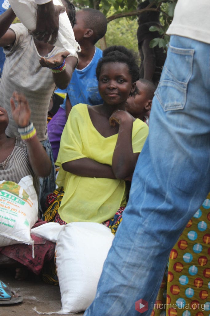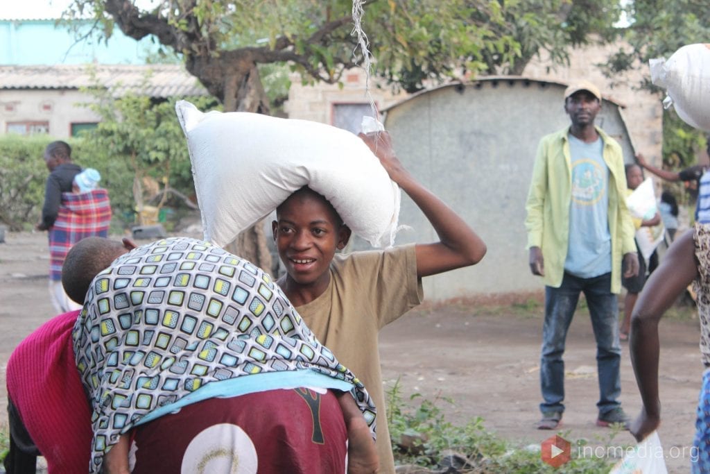 Residents of the neighborhood of Chinika receive 10KG bags of Corn Meal from the Felix Y. Manalo Foundation.
