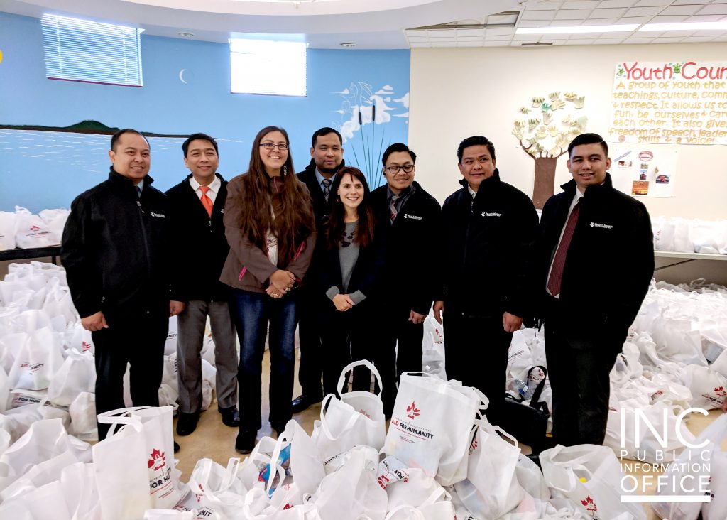 Days before the chapel dedication in Rathwell, the INC organized an Aid For Humanity charity event at the Turtle Island Community Centre in Winnipeg’s North End. Winnipeg has the highest population of indigenous people in Canada, and of this population, which includes First Nations, Metis, and Inuit, 35% are living below the poverty line. Through the Felix Y. Manalo (FYM) Foundation, the charitable arm of the INC, over 2000 care packages were prepared for the community. Guests, including nearby residents, the homeless, and clients at local shelters, were given the care packages filled with canned goods, and toiletries, such as soap and toothpaste, these packages were handed out and hot meals were served.