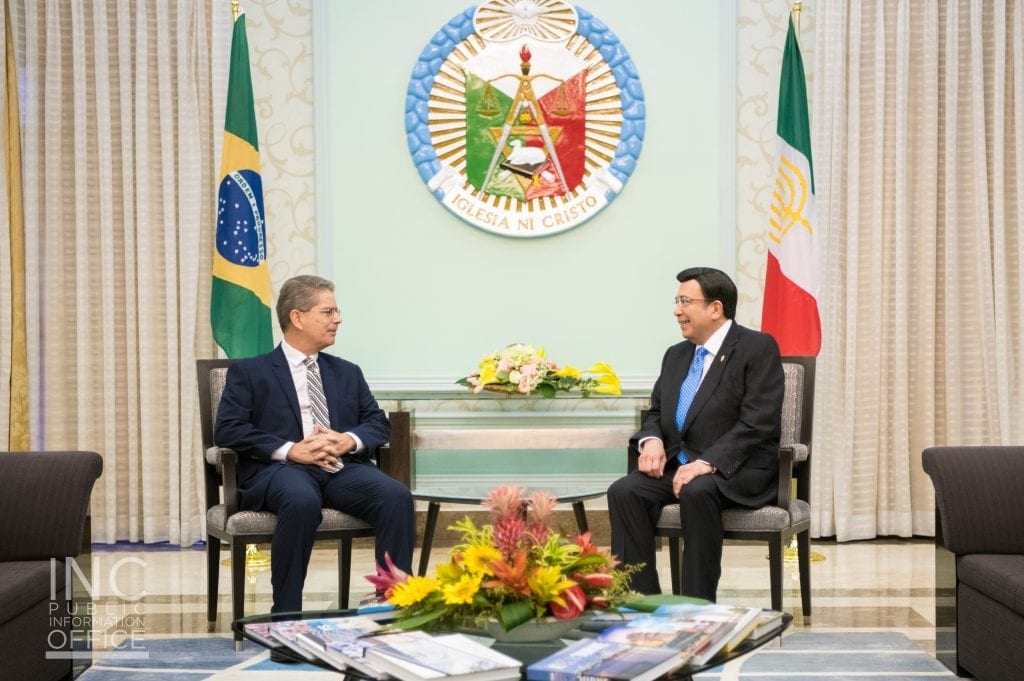 QUEZON CITY, PHILIPPINES (April 11, 2018) – The Brazilian Ambassador to the Philippines, Ambassador Rodrigo Do Amaral Souza, visited Iglesia Ni Cristo (INC or Church Of Christ in English, Igreja De Cristo in Portuguese) Executive Minister Brother Eduardo V. Manalo on Wednesday, April 11, 2018, expressing his intent to further strengthen Brazil’s relationship with the Church.