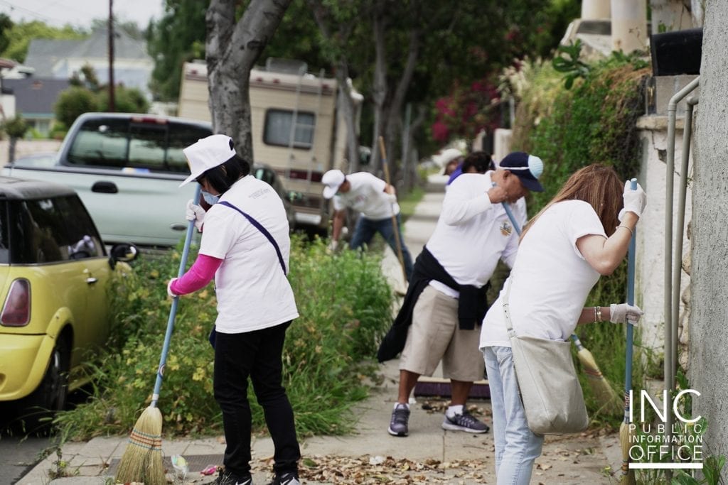 The award was presented by the City of Los Angeles, alongside officers of the Los Angeles Police Department (LAPD), during the INC’s Community Cleanup. Hundreds of volunteers from 16 local congregations in the INC’s Ecclesiastical District of Los Angeles County assembled to help with the neighborhood’s beautification and maintenance.